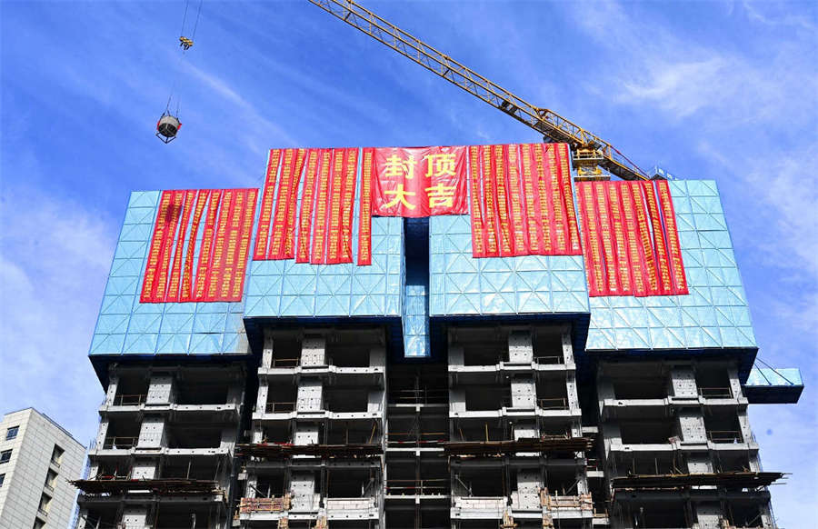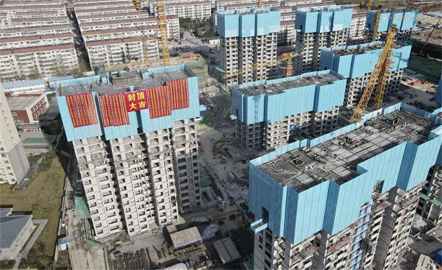 徐州淮海國際陸港南崗定銷房一期項(xiàng)目位于淮海國際港務(wù)區(qū)徐豐公路東側(cè),項(xiàng)目總建筑面積約14.6萬㎡,規(guī)劃建筑10棟高層住宅樓、1棟幼兒園、2棟商業(yè)樓及配套用房。此次封頂?shù)?/span>5#樓建筑面積7598.36㎡,地下1層,地上17層,為框架剪力墻結(jié)構(gòu)。