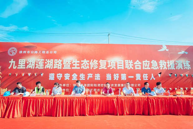 為提高全體參建人員安全意識,增強(qiáng)一線從業(yè)人員自救能力,營造濃厚的“安全生產(chǎn)月”活動(dòng)氛圍,6月21日下午,陸港集團(tuán)、各參建方在九里湖國家濕地公園北側(cè)沿湖道路(蓮湖路)建設(shè)工程第一標(biāo)段蓮湖路施工現(xiàn)場開展了聯(lián)合應(yīng)急救援演練活動(dòng)。